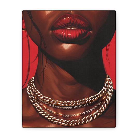 RED LIPS GOLD CHAINS - Canvas