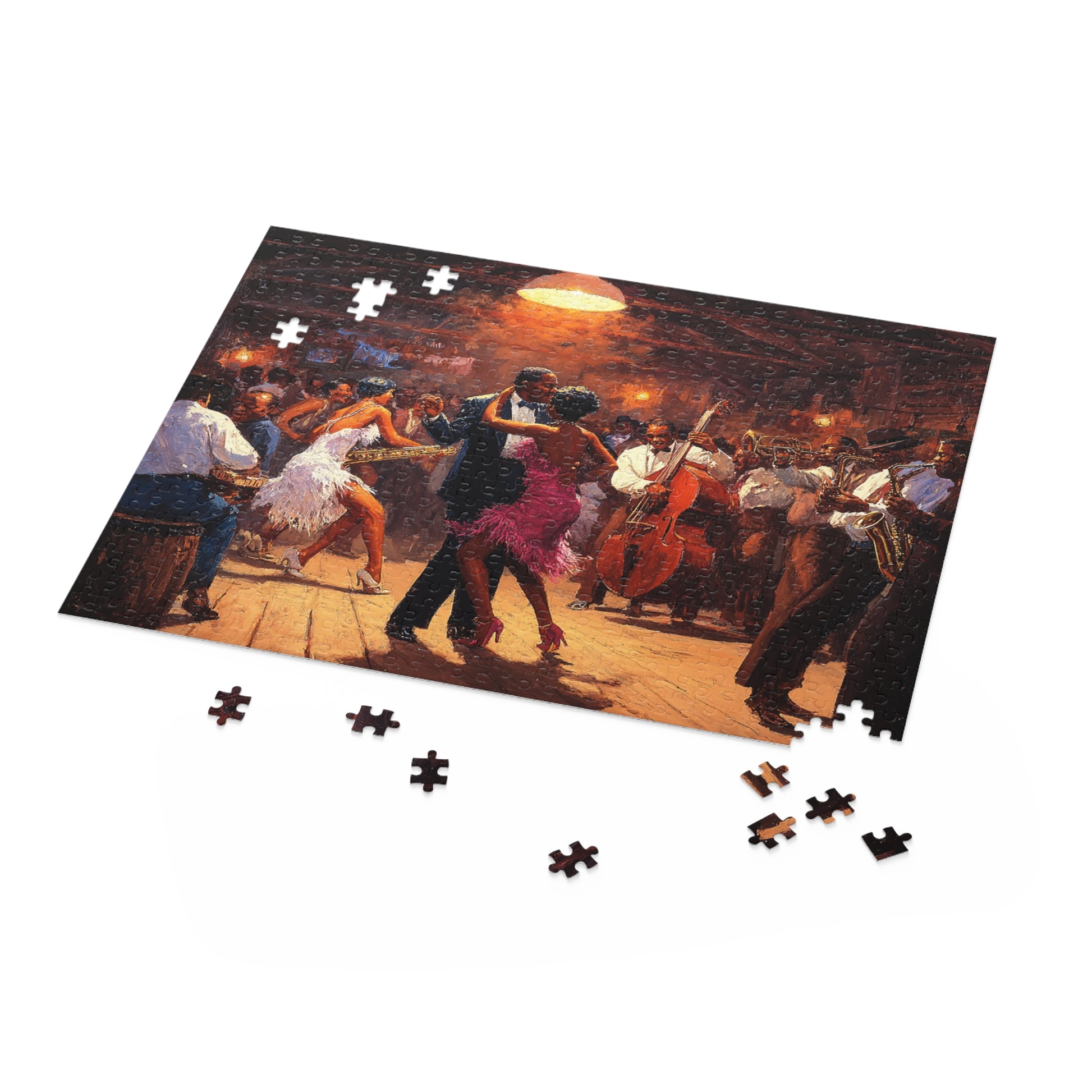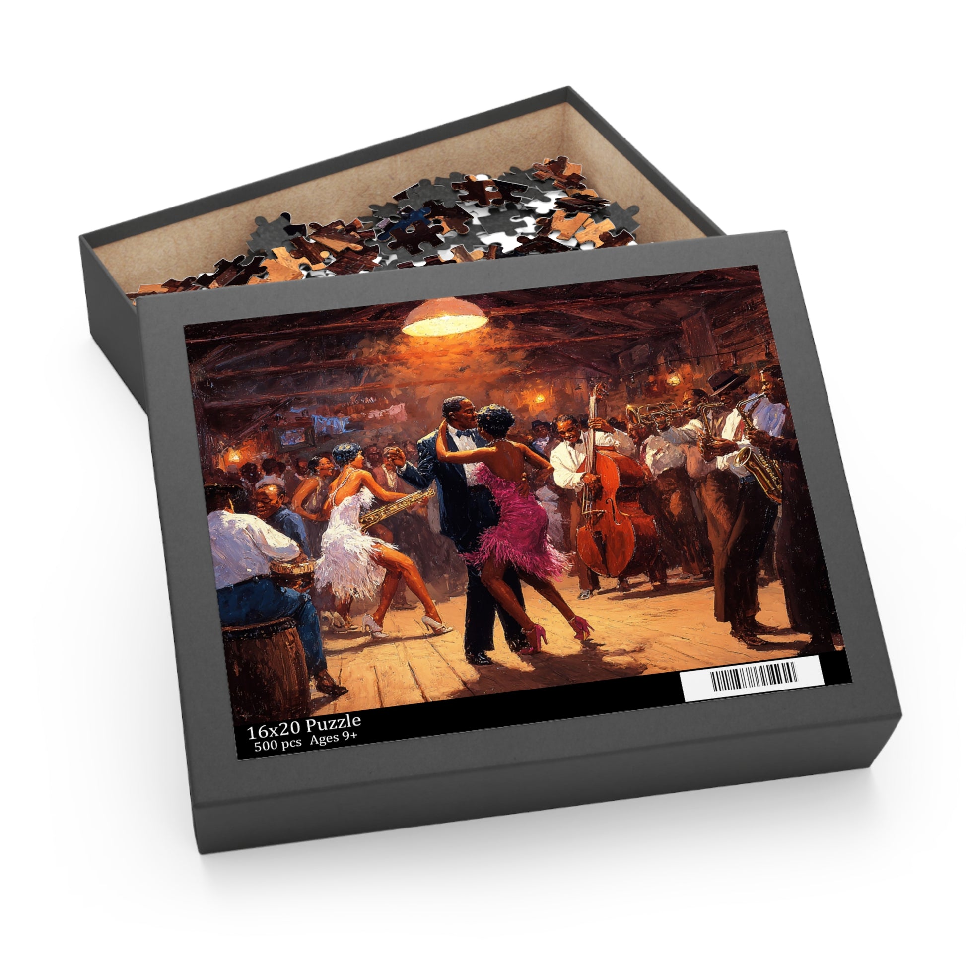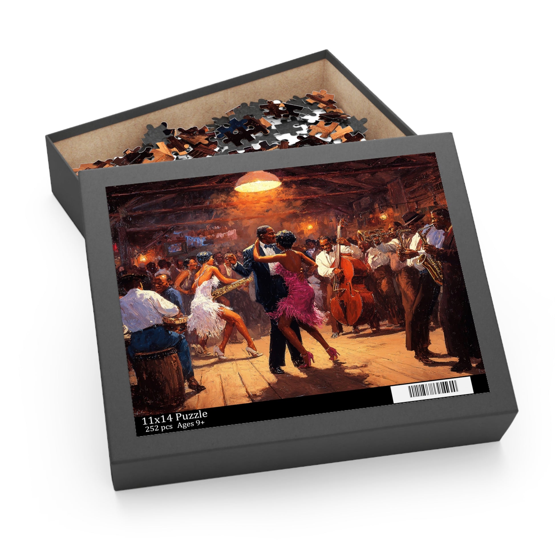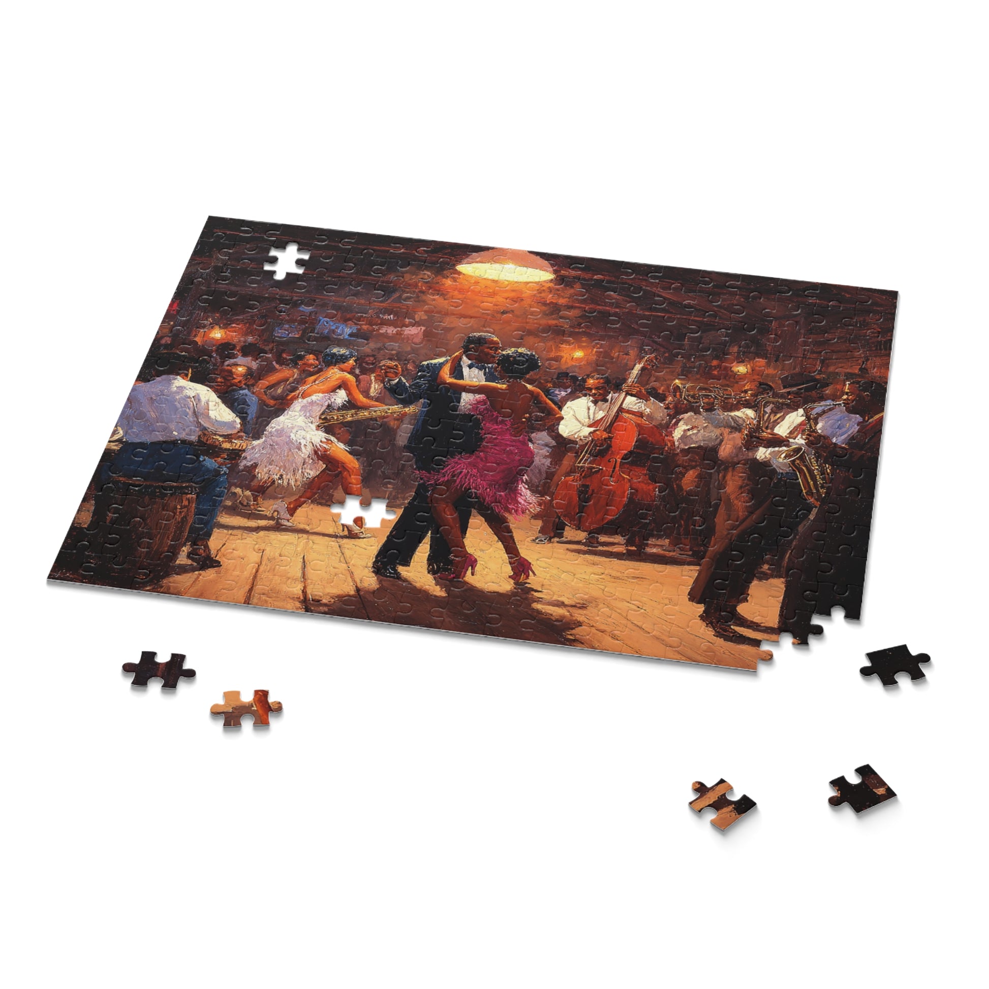 Lose yourself in the warm glow of a bustling jazz hall. The Heartbeat of Jazz puzzle recreates a lively scene of dancers, brass, and upright bass under amber light—each piece bringing you closer to the rhythm and hush of a crowded floor. As you fit the glossy chipboard pieces together, smoky notes and tapping shoes come alive in your living room. It’s a quiet, absorbing way to relive an evening of music with friends or to draw a single afternoon into something cinematic. The finished image sits proudly on the gift-ready box, ready to be displayed or revisited anytime you need a little soundtrack for stillness.